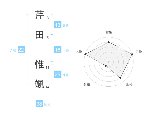 芹田 惟颯さんの外格は22画の1点!