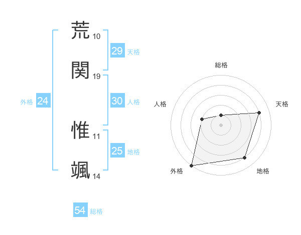 荒関 惟颯さんの外格は24画の5点!