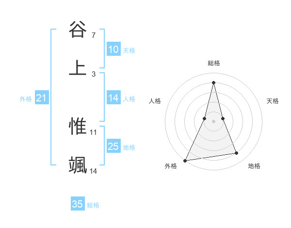 谷上 惟颯さんの総格は35画の4点!
