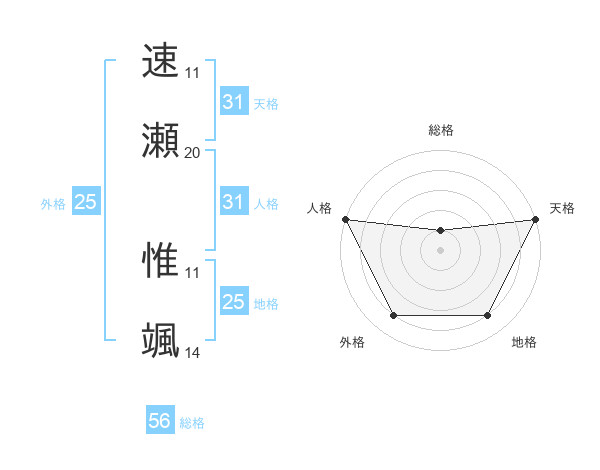 速瀬 惟颯さんの天格は31画の5点!