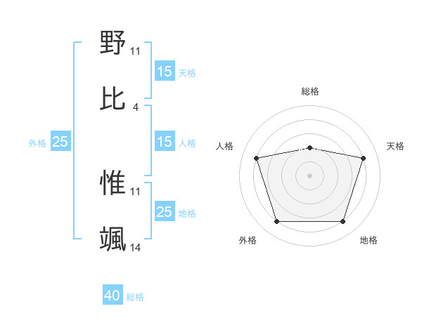 野比 惟颯さんを姓名の画数から五運を鑑定
