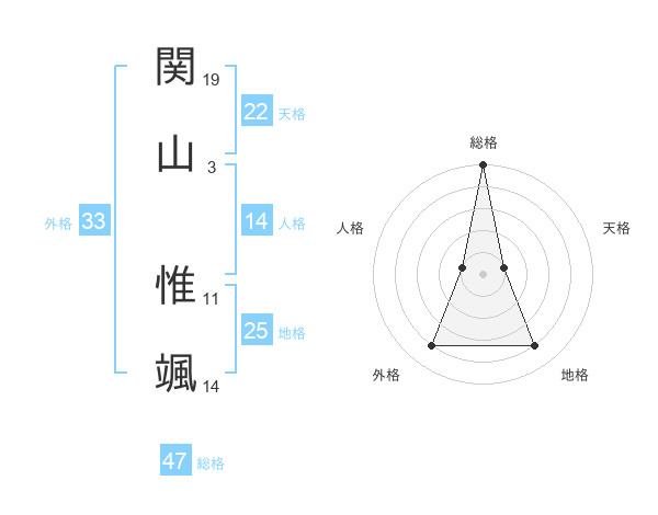 関山 惟颯さんを姓名の画数から五運を鑑定