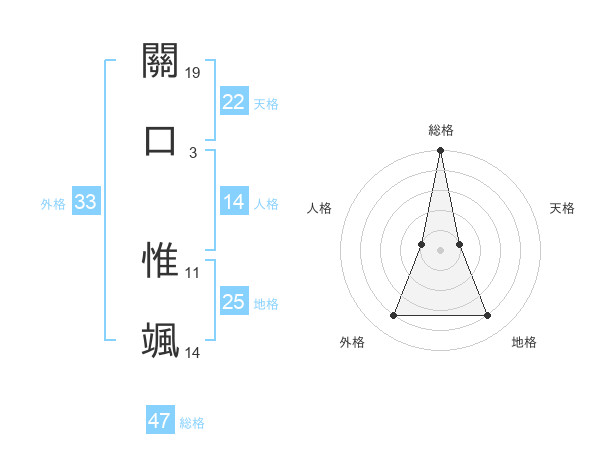 關口 惟颯さんを姓名の画数から五運を鑑定