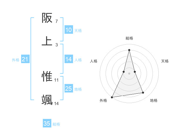 阪上 惟颯さんを姓名の画数から五運を鑑定