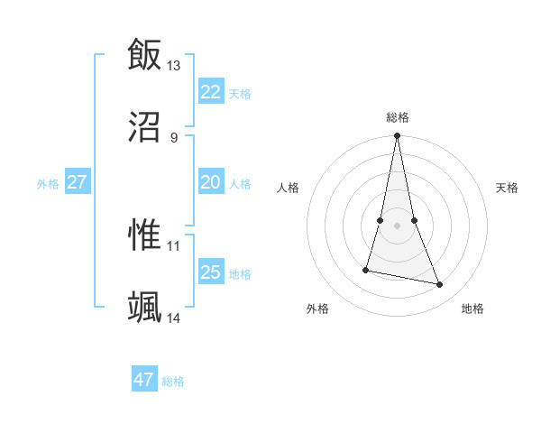 飯沼 惟颯さんを姓名の画数から五運を鑑定