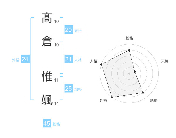 髙倉 惟颯さんの外格は24画の5点!