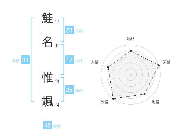鮭名 惟颯さんの天格は23画の5点!