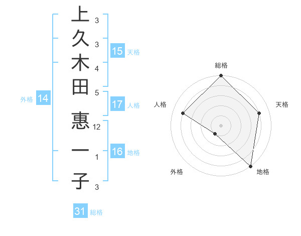 上久木田 惠一子さんを姓名の画数から五運を鑑定
