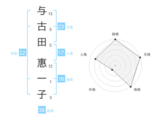 与古田 惠一子さんを姓名の画数から五運を鑑定