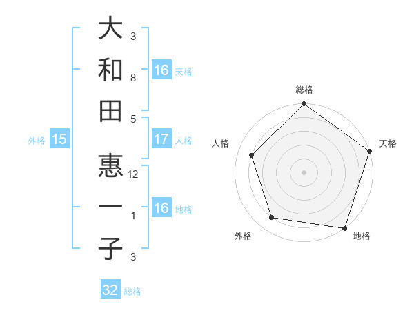 大和田 惠一子さんの天格は16画の5点!