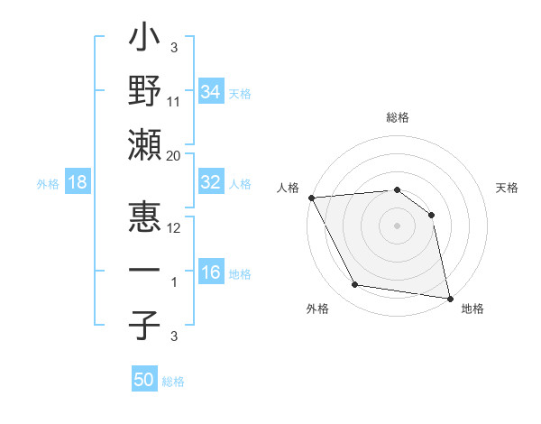 小野瀬 惠一子さんを姓名の画数から五運を鑑定