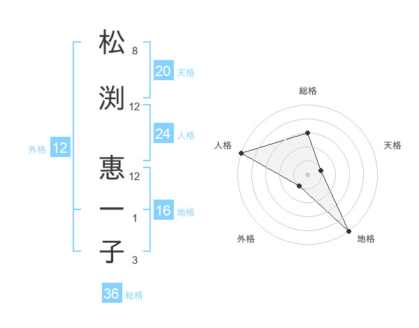 松渕 惠一子さんを姓名の画数から五運を鑑定