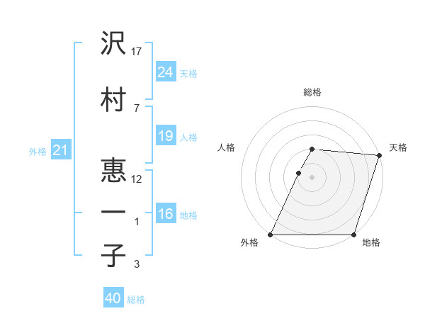 沢村 惠一子さんの外格は21画の5点!