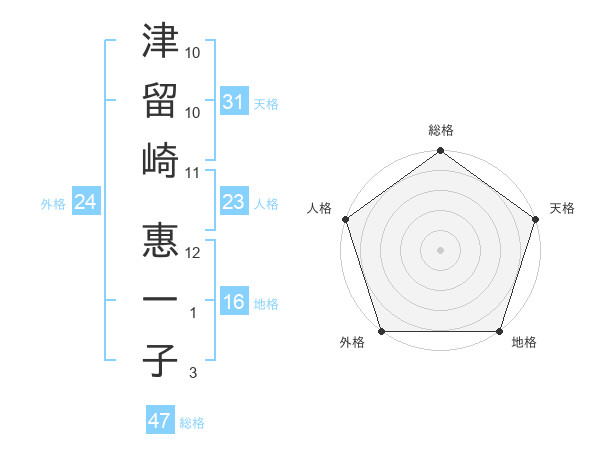 津留崎 惠一子さんを姓名の画数から五運を鑑定
