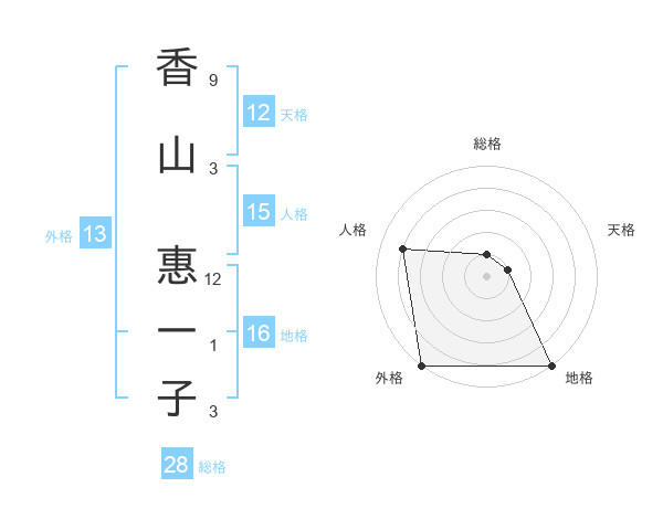 香山 惠一子さんの総格は28画の1点!