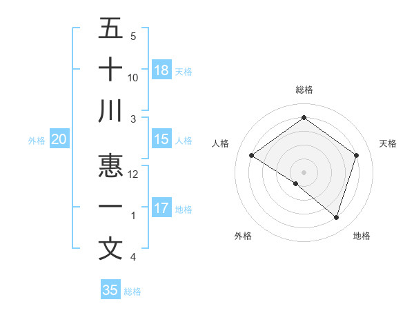 五十川 惠一文さんの総格は35画の4点!