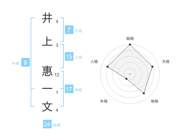 井上 惠一文さんを姓名の画数から五運を鑑定