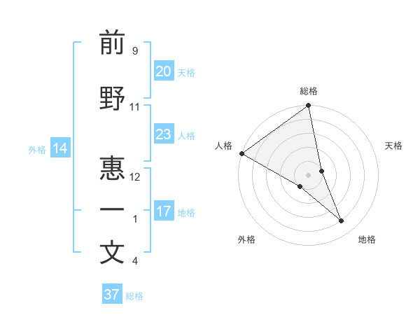 前野 惠一文さんを姓名の画数から五運を鑑定