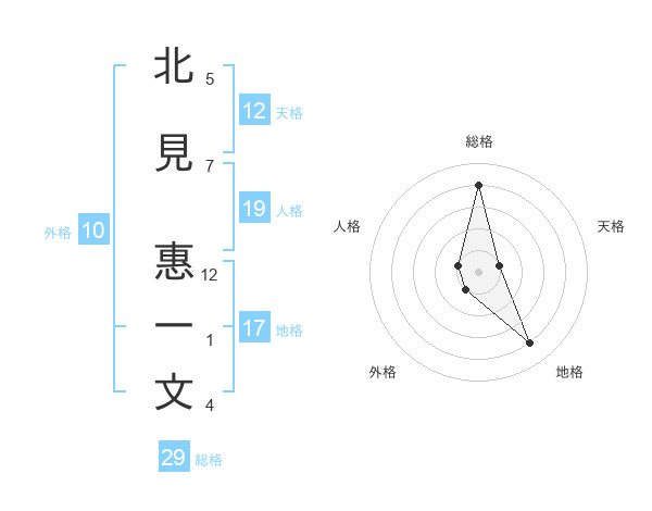 北見 惠一文さんを姓名の画数から五運を鑑定