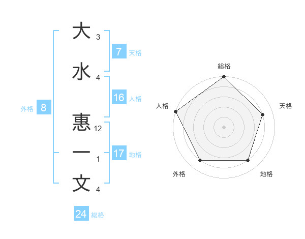 大水 惠一文さんを姓名の画数から五運を鑑定