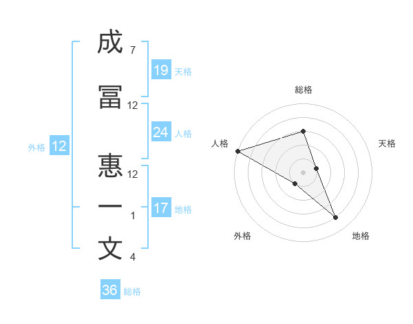 成冨 惠一文さんを姓名の画数から五運を鑑定