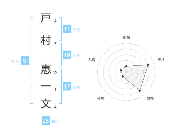 戸村 惠一文さんを姓名の画数から五運を鑑定