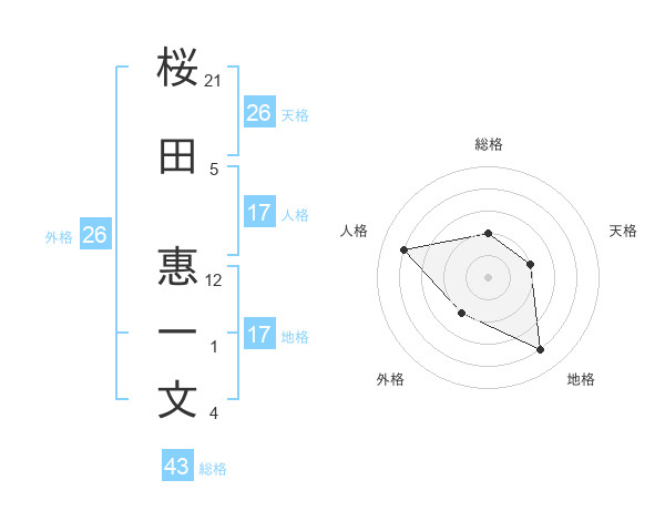 桜田 惠一文さんを姓名の画数から五運を鑑定