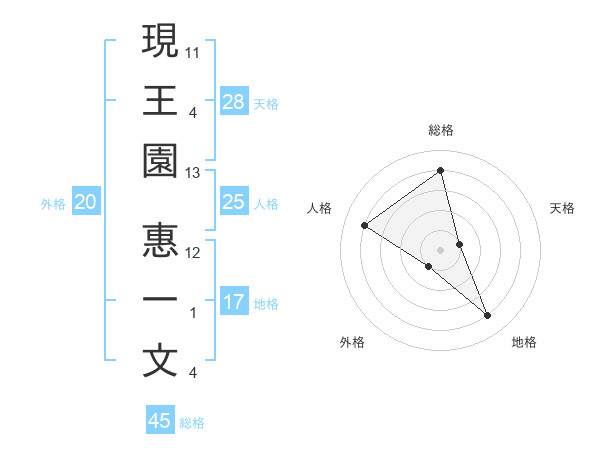 現王園 惠一文さんを姓名の画数から五運を鑑定