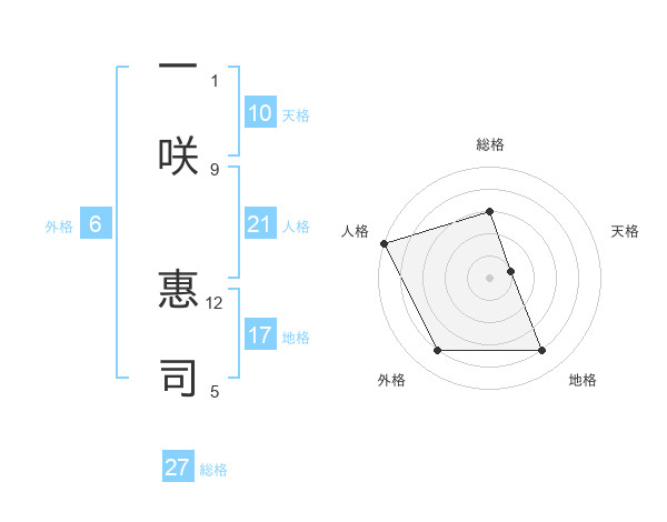一咲 惠司さんを姓名の画数から五運を鑑定