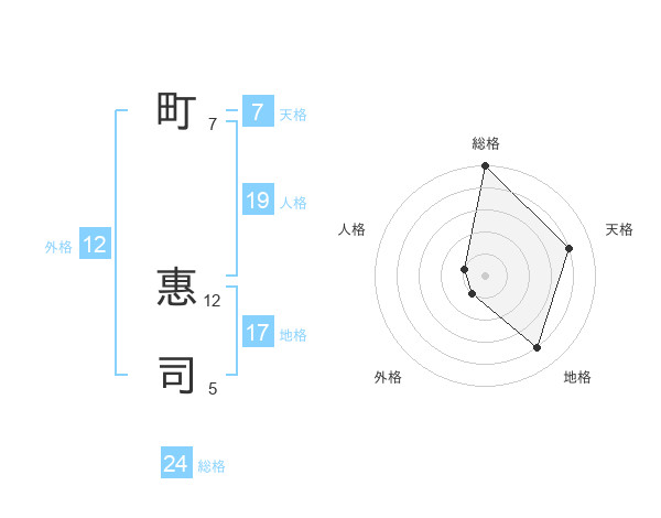 町 惠司さんの総格は24画の5点!