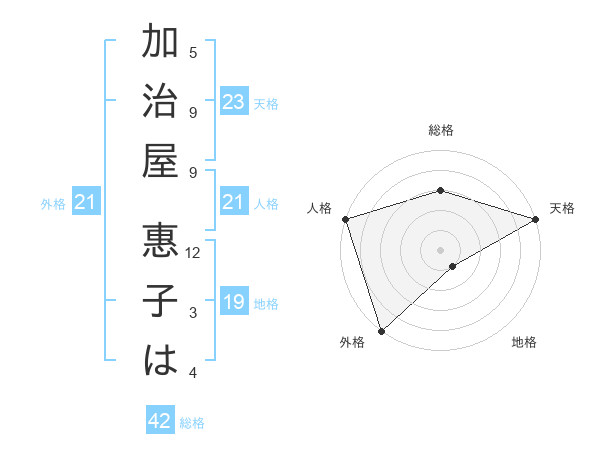 加治屋 惠子はさんを姓名の画数から五運を鑑定