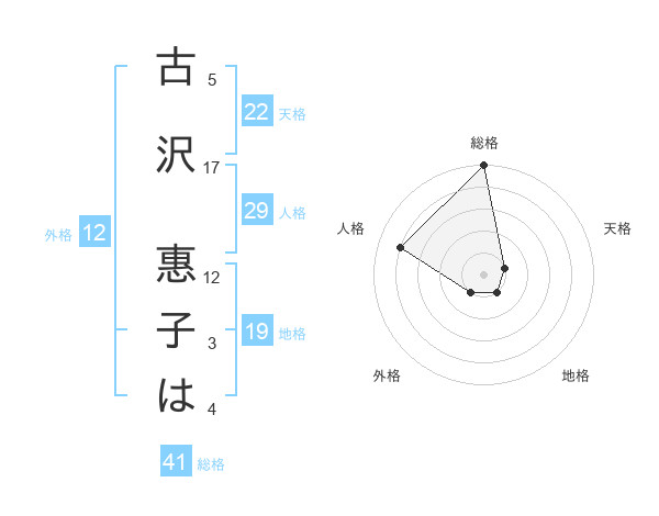 古沢 惠子はさんを姓名の画数から五運を鑑定