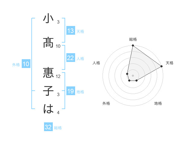 小髙 惠子はさんの天格は13画の5点!