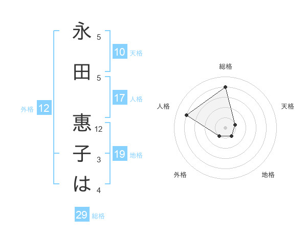 永田 惠子はさんを姓名の画数から五運を鑑定
