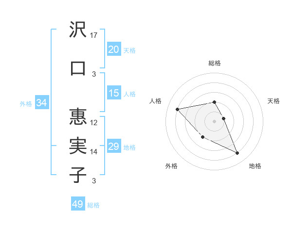 沢口 惠実子さんの総格は49画の2点!