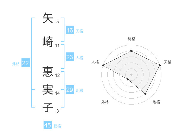 矢崎 惠実子さんの総格は45画の4点!