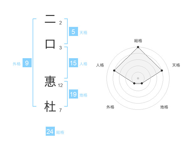 二口 惠杜さんを姓名の画数から五運を鑑定
