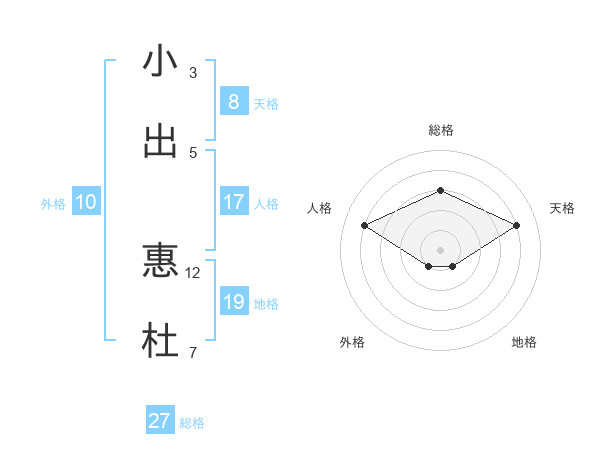 小出 惠杜さんを姓名の画数から五運を鑑定