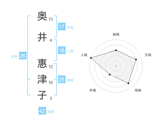 奥井 惠津子さんを姓名の画数から五運を鑑定