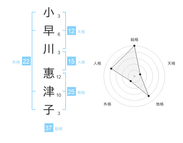 小早川 惠津子さんの総格は37画の5点!