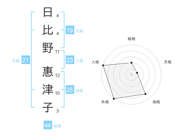 日比野 惠津子さんを姓名の画数から五運を鑑定