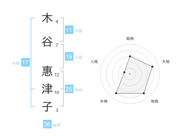 木谷 惠津子さんを姓名の画数から五運を鑑定