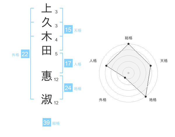 上久木田 惠淑さんを姓名の画数から五運を鑑定