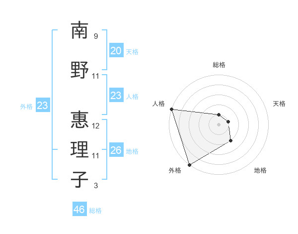 南野 惠理子さんを姓名の画数から五運を鑑定