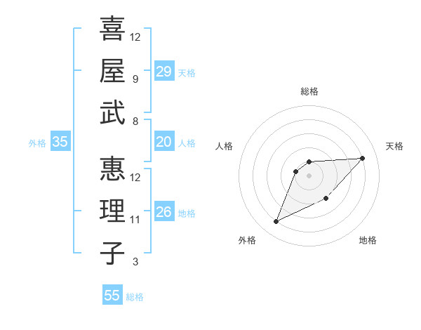 喜屋武 惠理子さんを姓名の画数から五運を鑑定