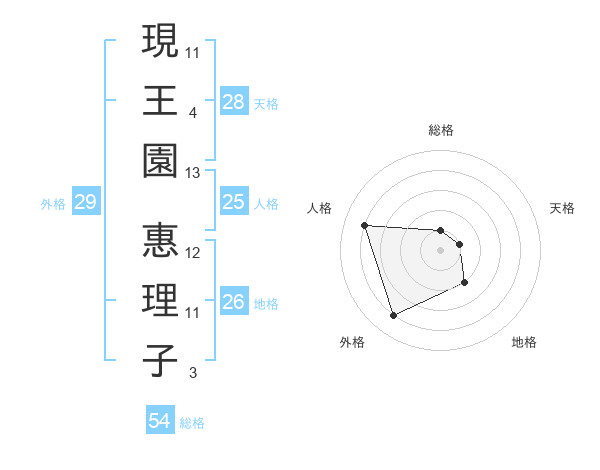 現王園 惠理子さんの総格は54画の1点!