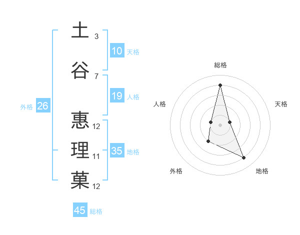 土谷 惠理菓さんを姓名の画数から五運を鑑定