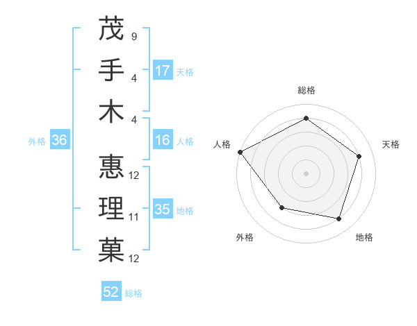 茂手木 惠理菓さんの天格は17画の4点!