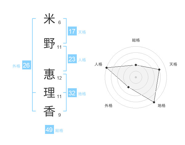 米野 惠理香さんの総格は49画の2点