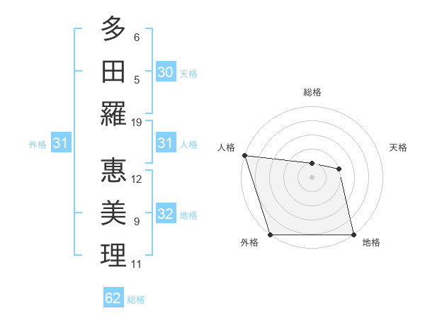 多田羅 惠美理さんを姓名の画数から五運を鑑定